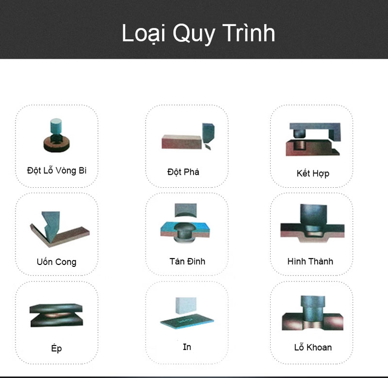 ✅ Đột lỗ, dập gân, dập định hình kim loại mỏng (sắt, inox, nhôm).