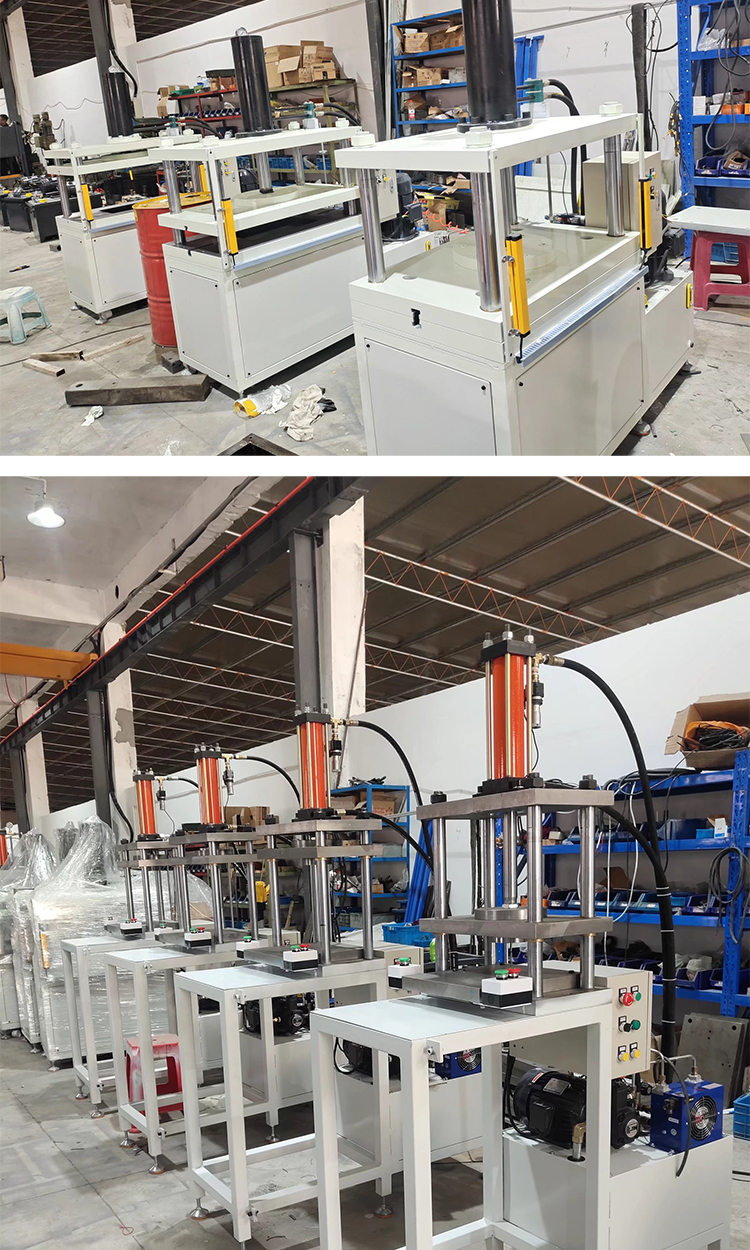 Hệ thống thủy lực: Bao gồm bơm dầu, van điều áp, thùng dầu, đồng hồ áp suất và hệ thống ống dẫn, cho phép điều khiển áp lực ép một cách linh hoạt và an toàn.