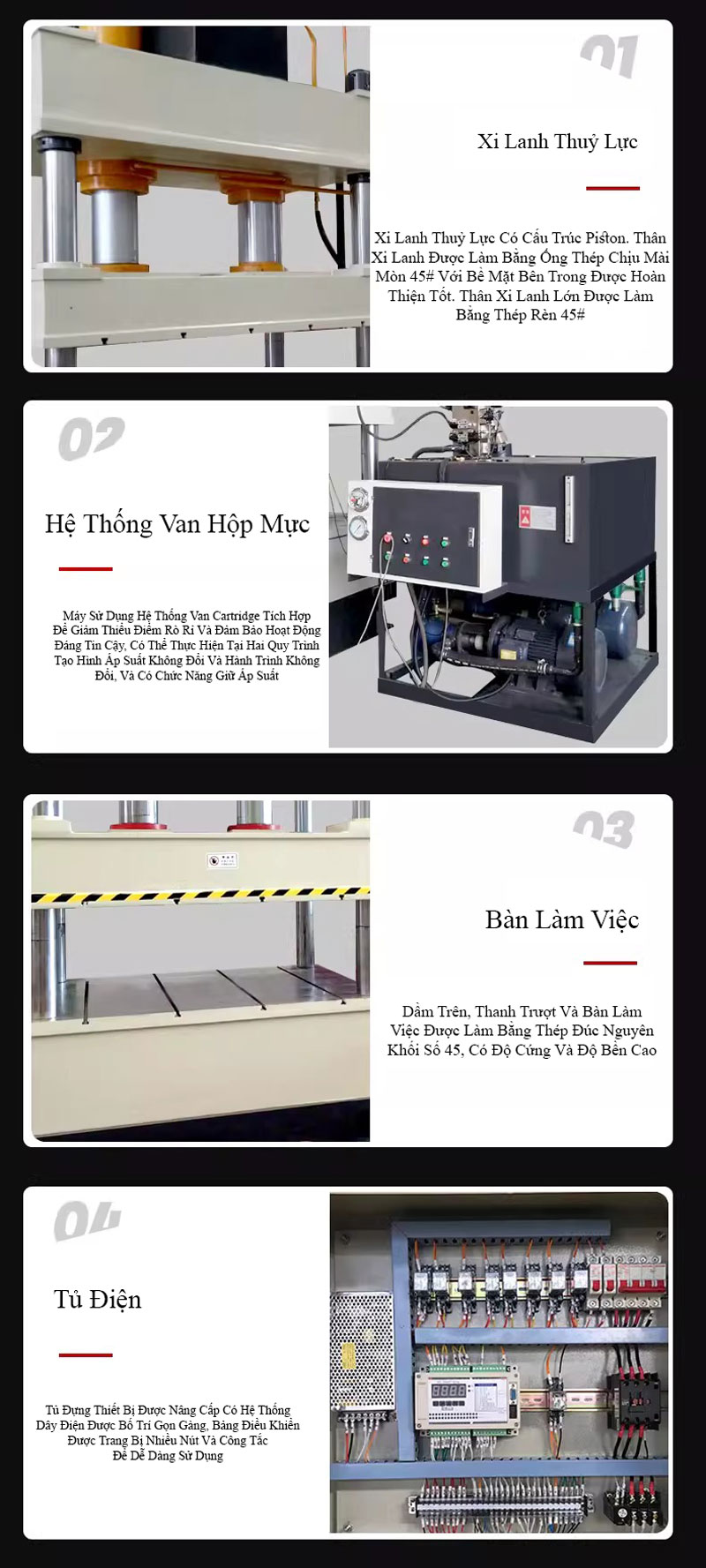 Trang bị cảm biến áp suất, công tắc hành trình, đảm bảo độ chính xác và an toàn.