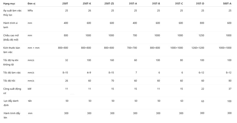 Lực ép danh định: 100 tấn – 200 tấn.
