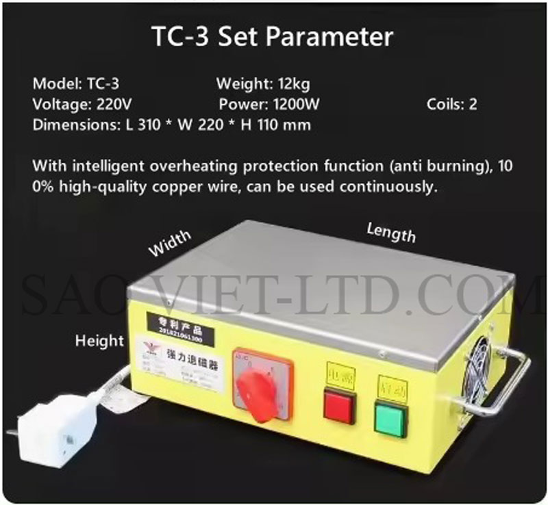 Máy khử từ giúp đưa vật liệu về trạng thái không từ tính để tránh ảnh hưởng đến các thiết bị điện tử hoặc hệ thống đo lường.
