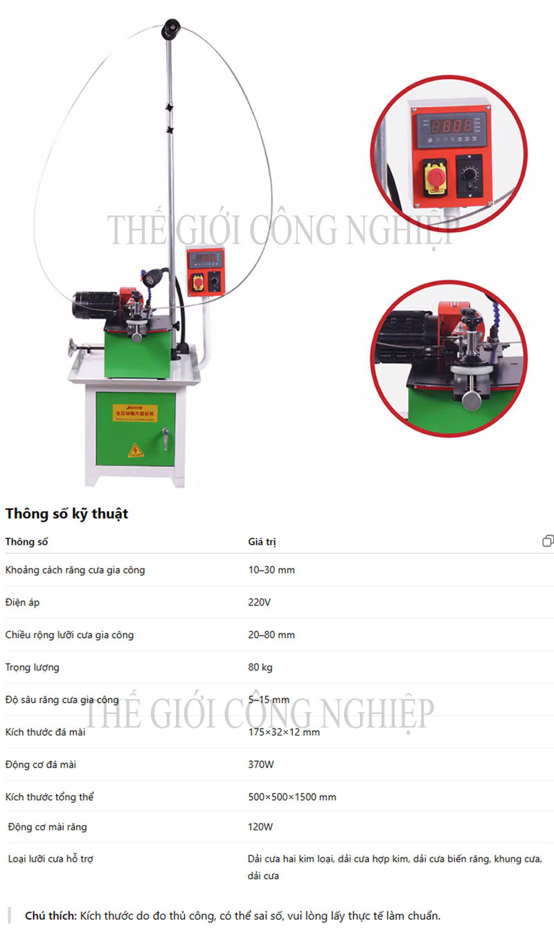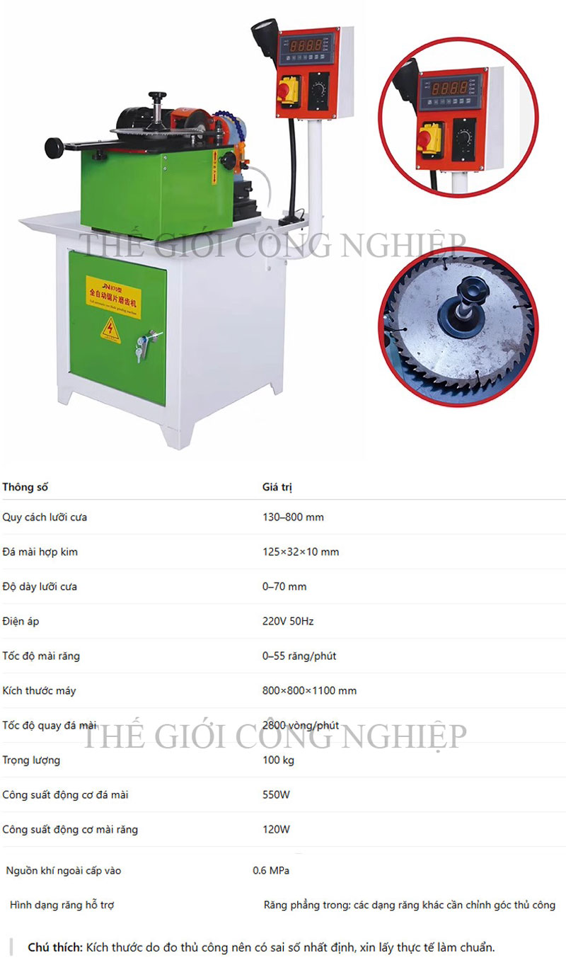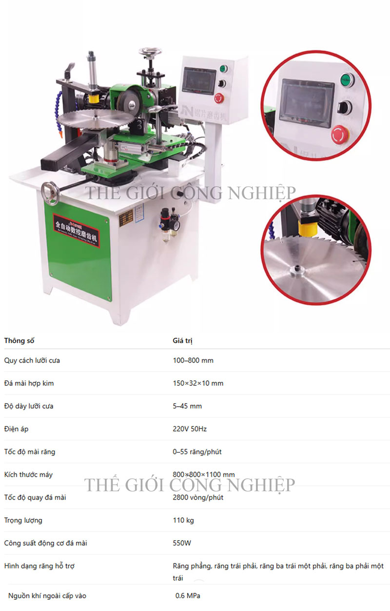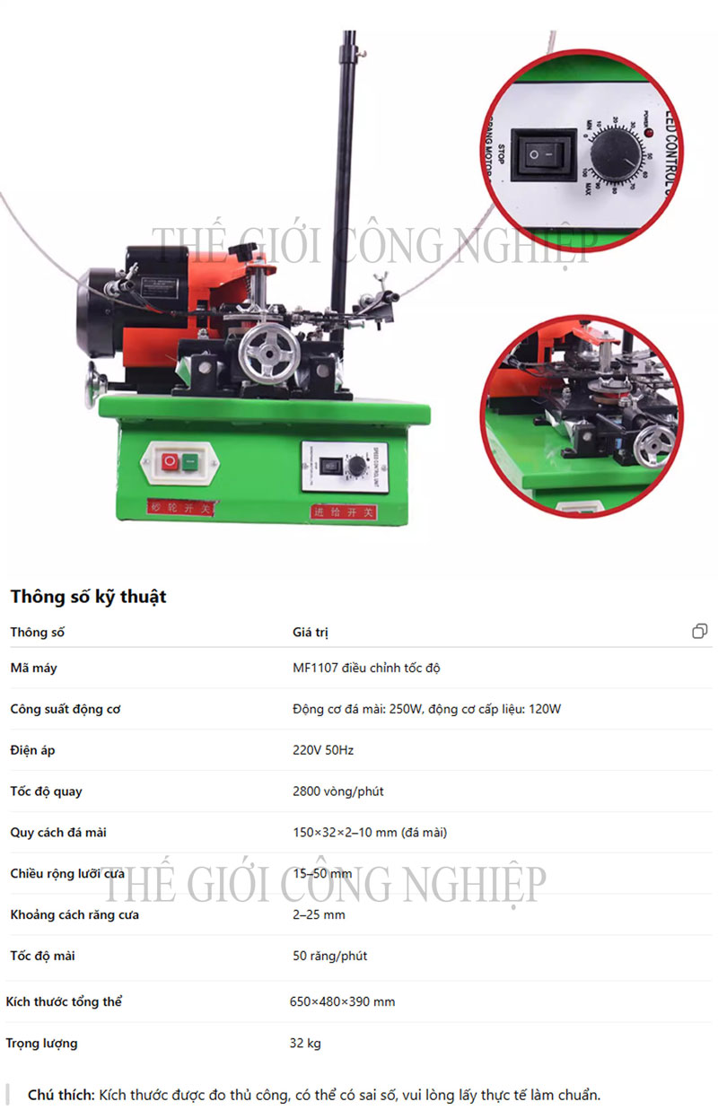 Bộ điều khiển tốc độ: cho phép điều chỉnh tốc độ mài và cấp liệu tự động để phù hợp với loại răng cưa.