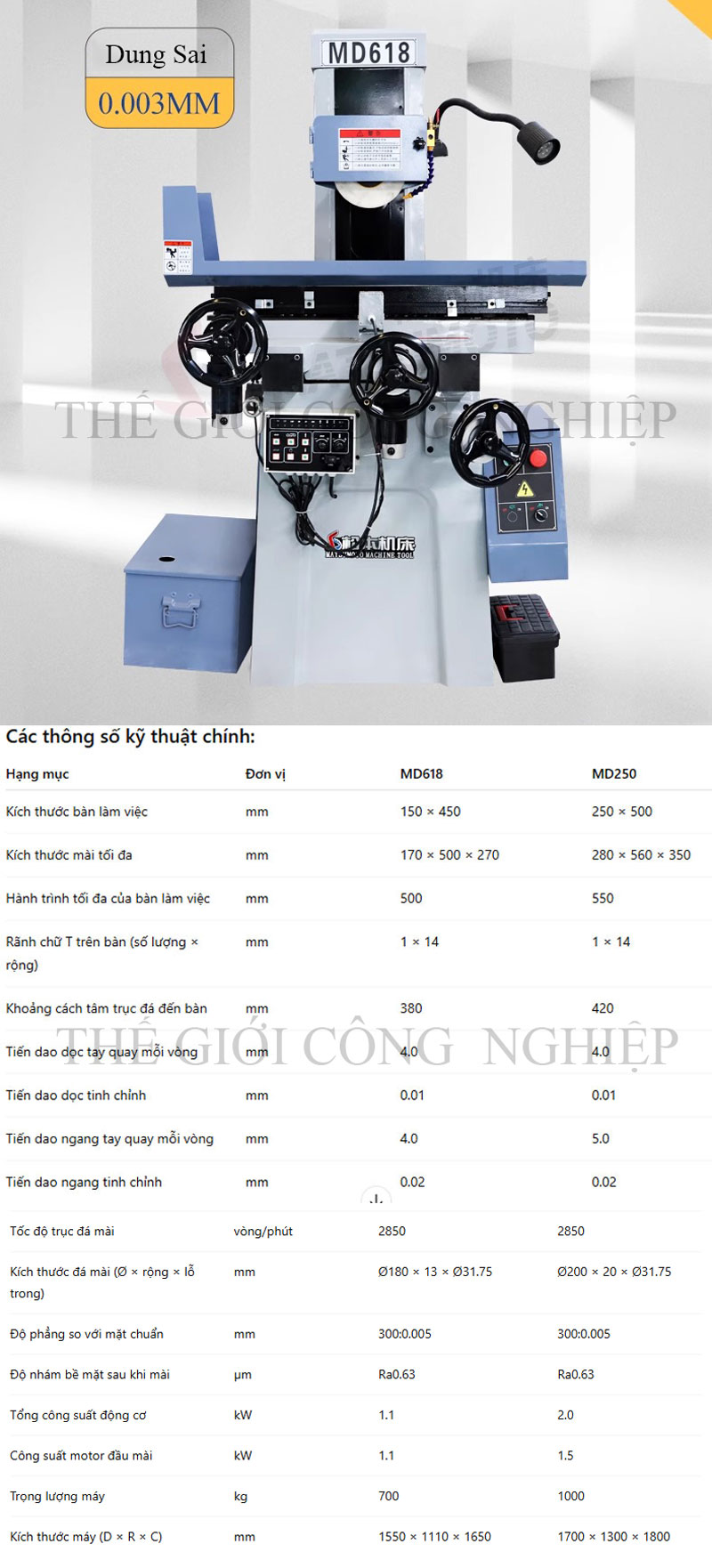 Máy mài phẳng mini M618 tự động là thiết bị chuyên dùng để gia công bề mặt phẳng với độ chính xác cao, thích hợp cho các chi tiết nhỏ trong ngành khuôn mẫu, cơ khí chính xác, điện tử và gia công kim loại. Máy được thiết kế nhỏ gọn, dễ vận hành, phù hợp cho xưởng vừa và nhỏ, trường dạy nghề hoặc trung tâm nghiên cứu.