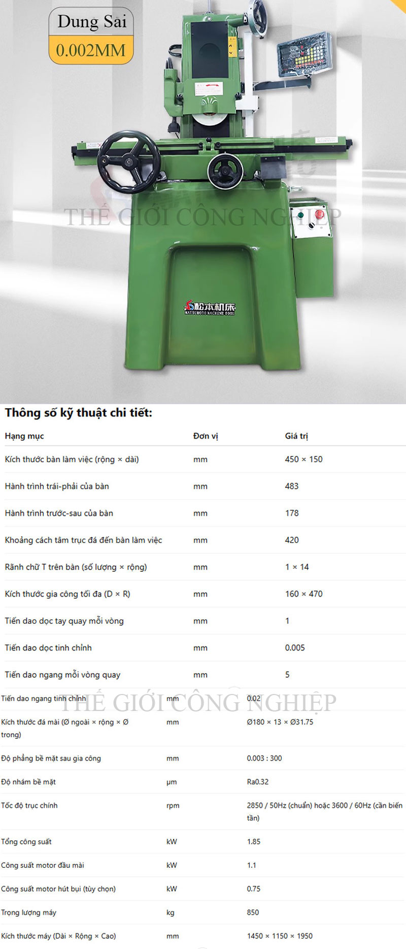 ✅ Có thể tích hợp biến tần hoặc bộ hút bụi tùy chọn để tăng hiệu quả và độ sạch trong quá trình mài.