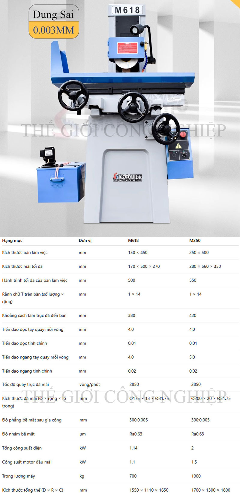 🧱 Thông số tham khảo (theo dòng M618):