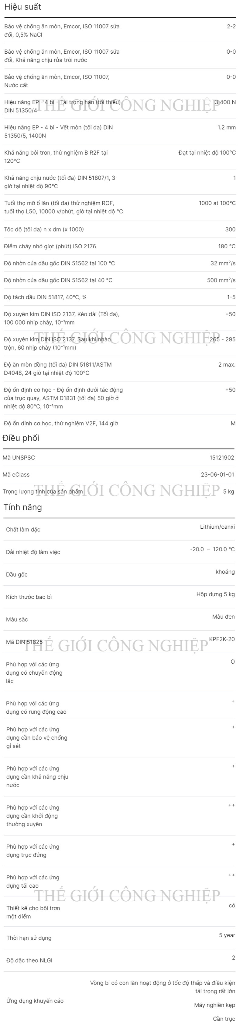 Sản phẩm này đặc biệt thích hợp cho các ứng dụng yêu cầu mỡ có khả năng bôi trơn lâu dài và chịu được các điều kiện làm việc khắc nghiệt.