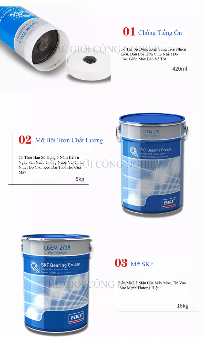SKF LGEM 2 là một loại mỡ bôi trơn đặc biệt của SKF, có độ nhớt cao và được thiết kế để sử dụng trong các điều kiện khắc nghiệt như tải trọng nặng, nhiệt độ cao và môi trường ẩm ướt. Dưới đây là một số đặc điểm chính của mỡ SKF LGEM 2: