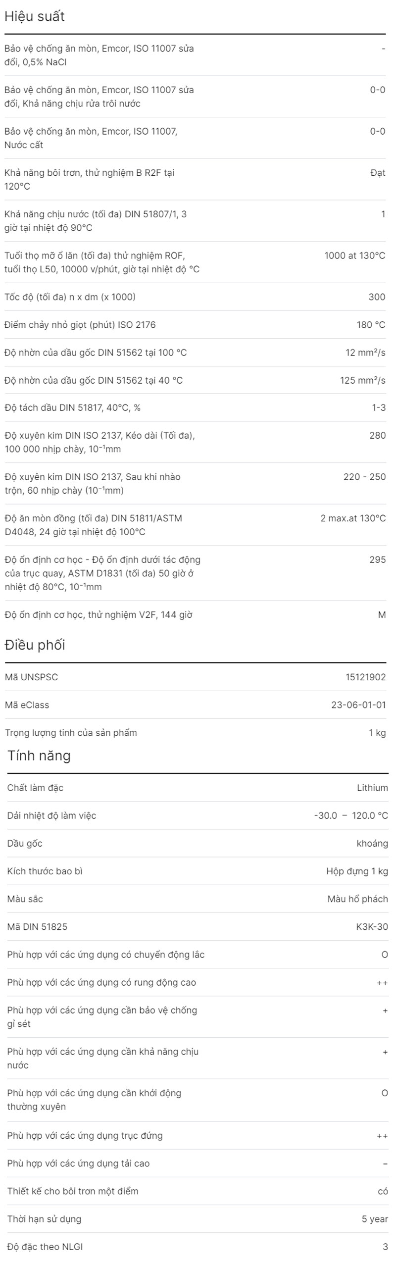 - Độ cứng NLGI: Cấp 3 (Độ đặc cao)