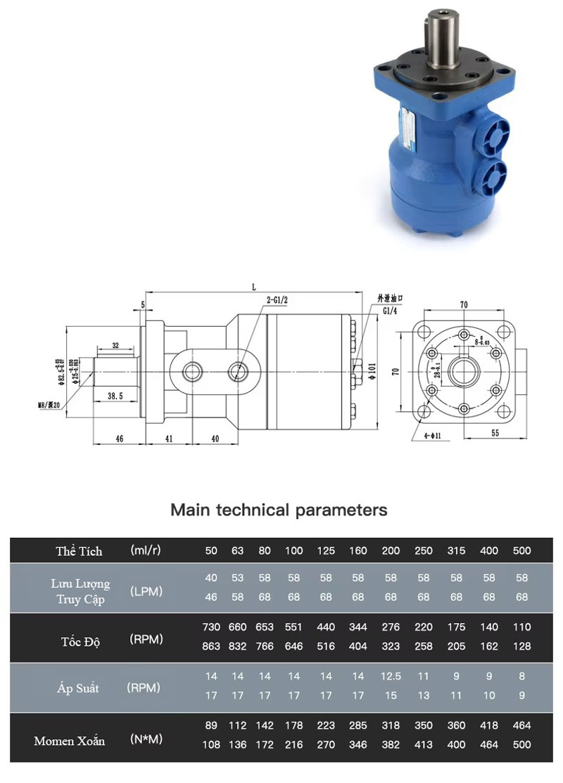 Mô tả chi tiết Mô Tơ Thủy Lực Cycloid BMR50, 80, 100, 160, 200, 250, 315, 400, 500