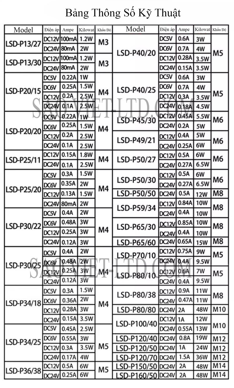 Nguồn cấp: Điện áp DC 24V (có thể tùy chỉnh theo yêu cầu: 12V, 48V…).