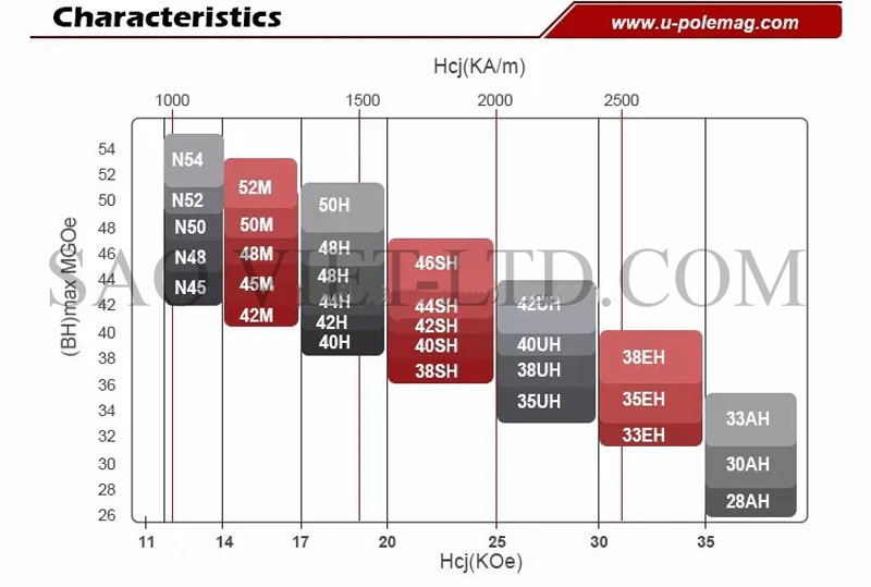 N42SH: Từ lực mạnh hơn N40EH, chịu nhiệt đến 180°C