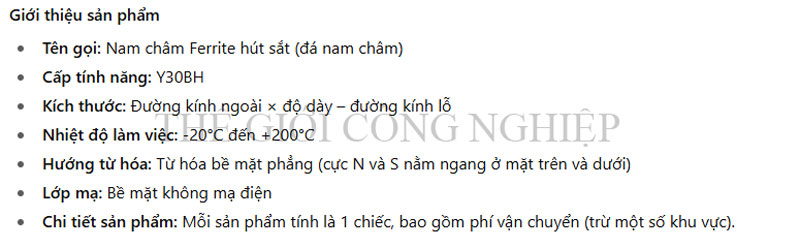 Hoạt động tốt trong dải nhiệt độ từ -20°C đến +200°C, không bị suy giảm từ tính nhanh khi làm việc lâu dài trong môi trường khắc nghiệt. Bề mặt không mạ, đảm bảo đặc tính từ ổn định và khả năng kết hợp tốt với các vật liệu khác trong quá trình lắp ráp.