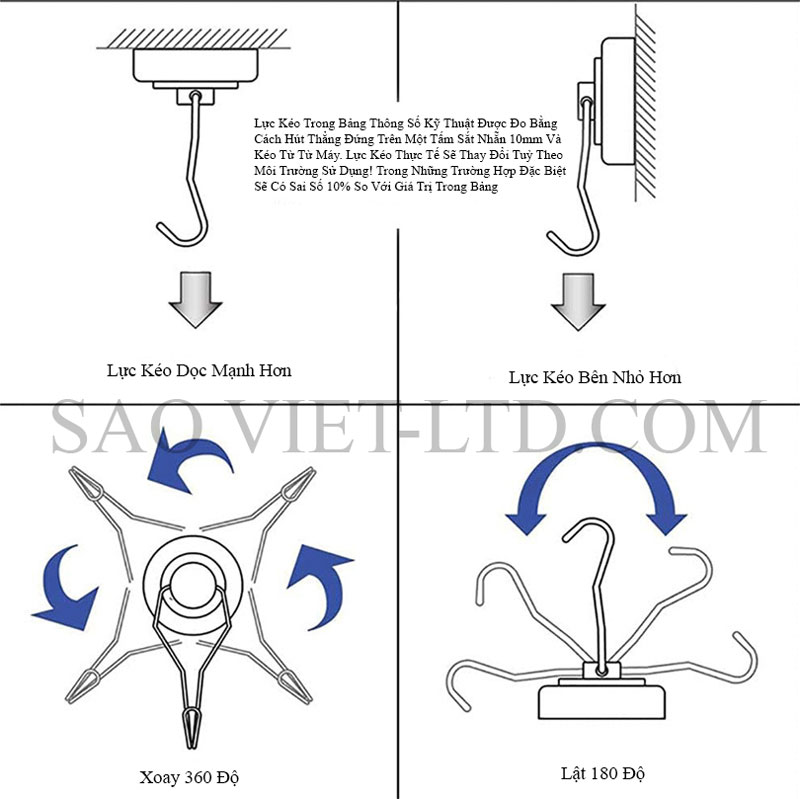Móc treo xoay 360° và gập 180°, linh hoạt sử dụng.