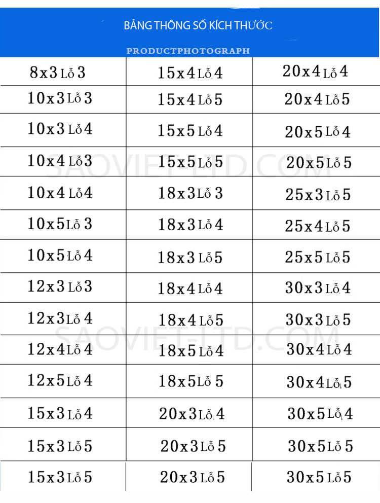 Nhiều kích thước để lựa chọn theo nhu cầu sử dụng.