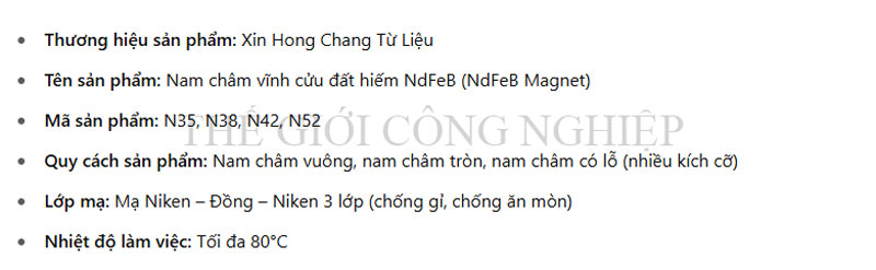 Cấp từ: N35 – lực từ ổn định, cực mạnh