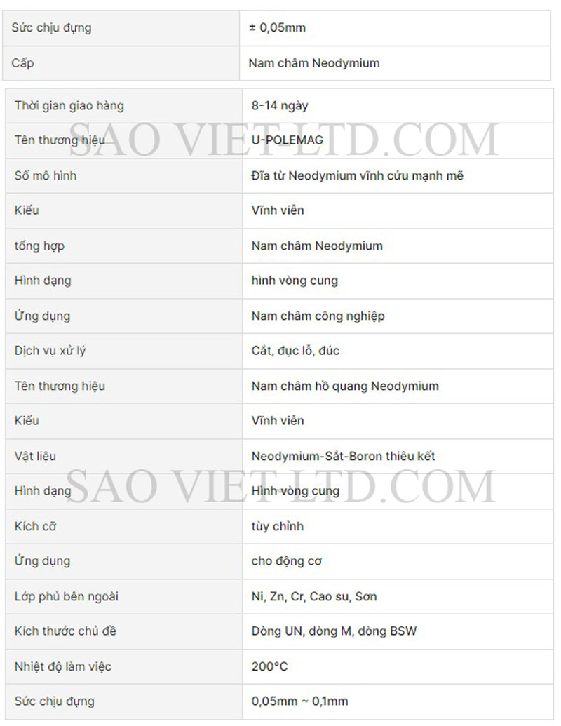 Tùy chỉnh hình dạng, cấp từ, lớp mạ và nhiệt độ làm việc theo yêu cầu kỹ thuật.