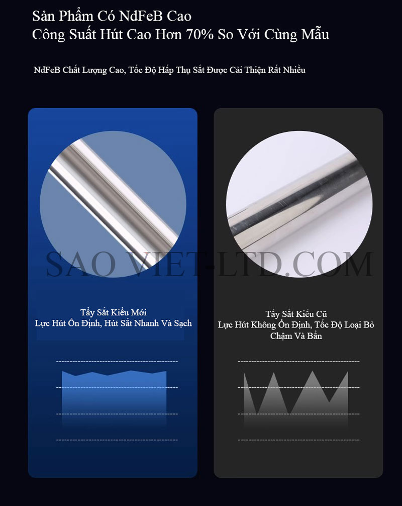Sản phẩm có cấu trúc dạng thanh tròn đường kính 22mm, bề mặt nhẵn bóng, dễ dàng vệ sinh và lau chùi sau khi sử dụng. Với lực từ trường mạnh, thanh nam châm có thể hút giữ hiệu quả các mạt sắt, đinh vít, bu lông, mảnh kim loại nhỏ lẫn trong nguyên liệu, giúp bảo vệ máy móc, nâng cao chất lượng thành phẩm và đảm bảo an toàn trong sản xuất.