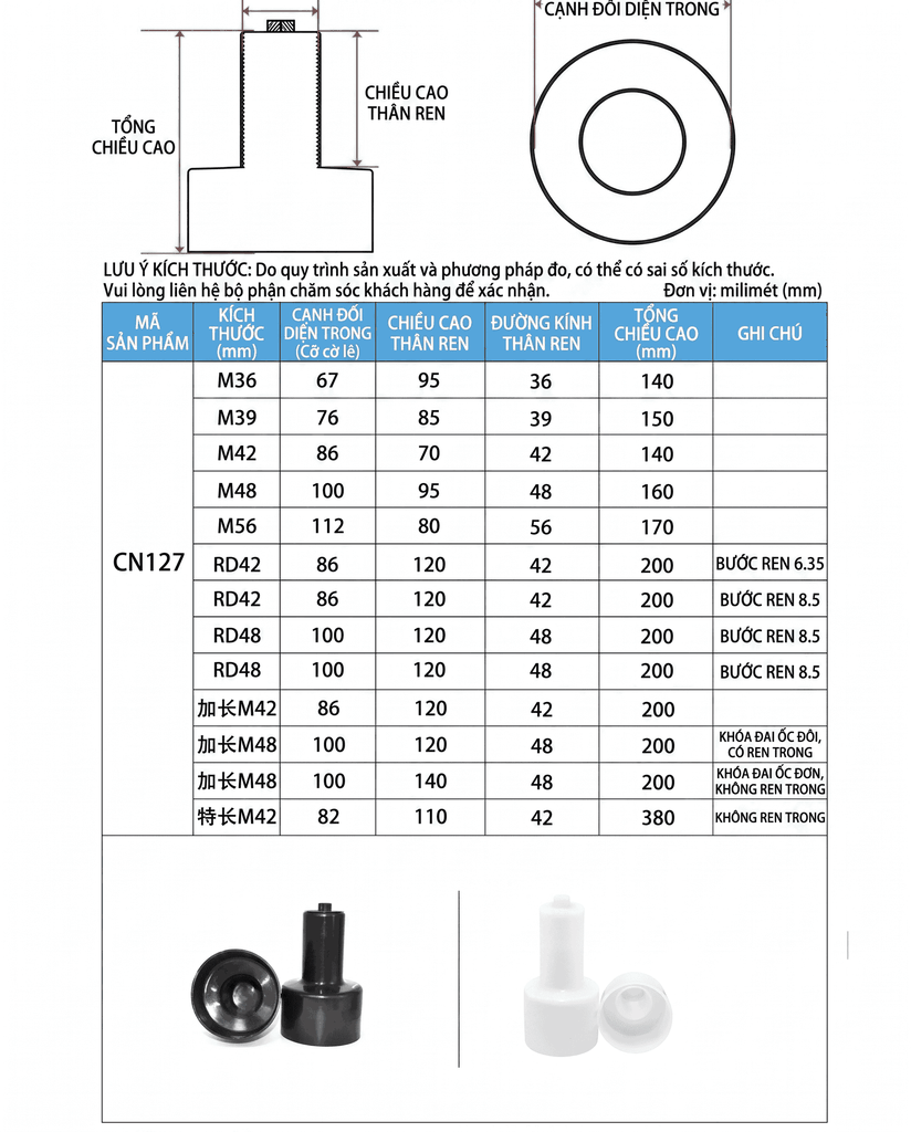 Thiết kế chuẩn kích thước từ M36 đến M56, nắp bảo vệ ôm khít phần ren và đai ốc, hạn chế tối đa tình trạng oxy hóa, rỉ sét, giúp tăng tuổi thọ thiết bị và giảm chi phí bảo trì.