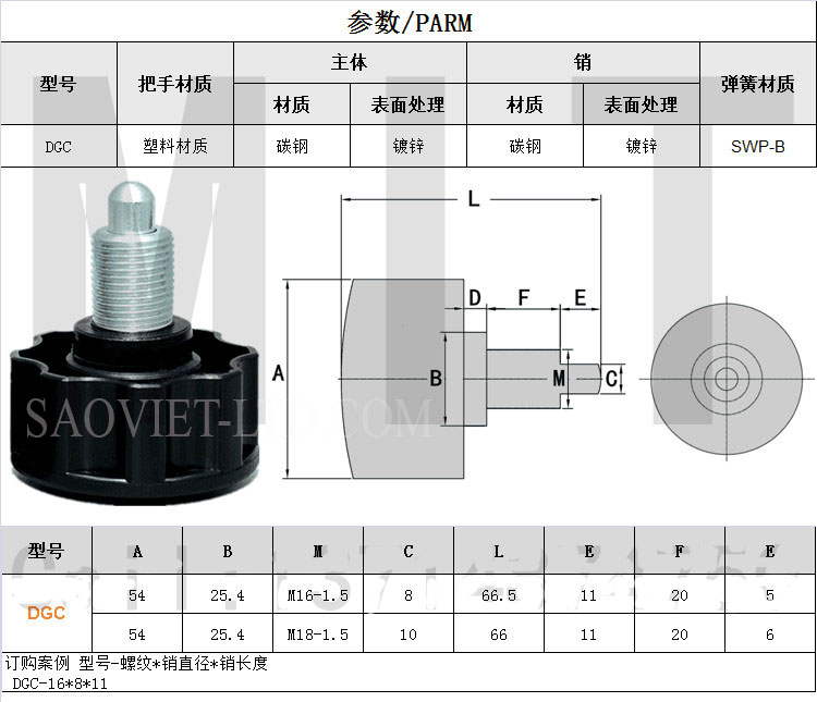 Bảng Thông Số Kỹ Thuật Núm Vặn Pít-Tông DGC Xe Đạp Tập Thể Dục