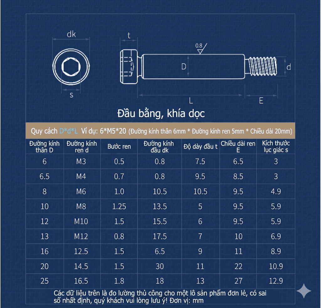 | Tiêu chuẩn | DIN 912 / ISO 4762 |