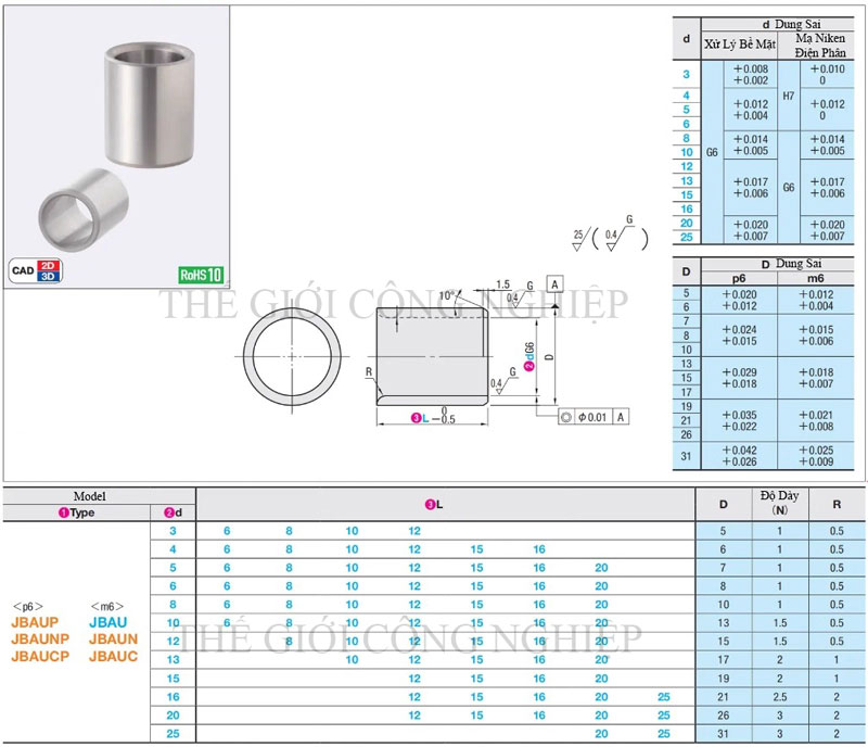 Ống Lót C Cho Đồ Kẹp JBAU16 / JBAUP20 – C Bush Chính Xác Cho Chấu Kẹp