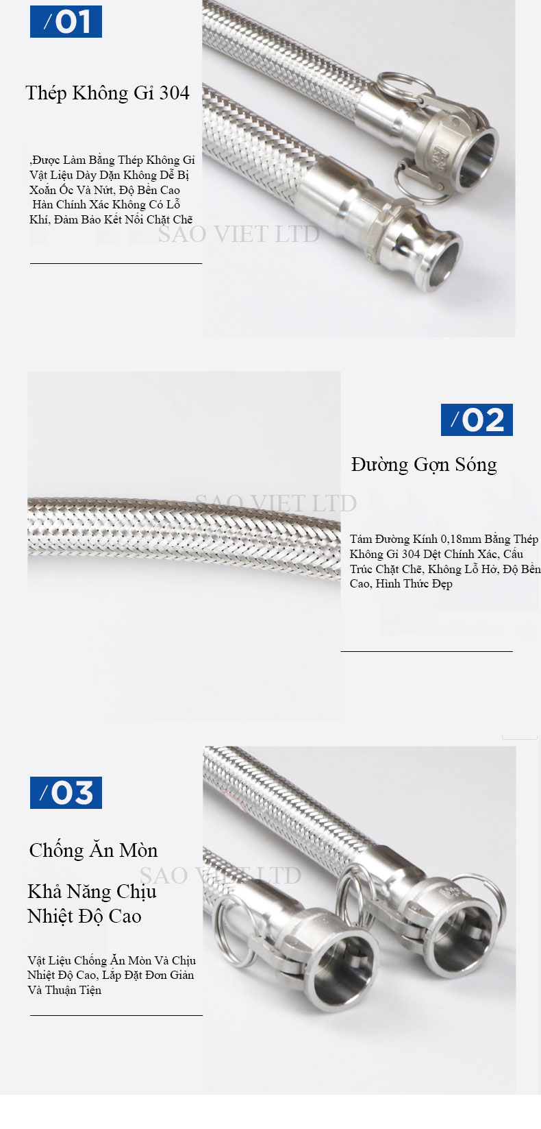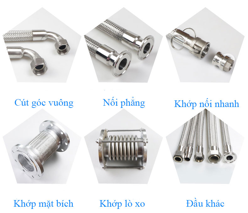 Khớp nối mềm kim loại là loại khớp nối có cầu tạo ống mềm Inox (inox 304, Inox 316, 321), lưới bọc là Inox 304 (hay còn gọi là thép không gỉ SUS 304, 316, 321). và phụ kiện kết nối: Inox 304/316, thép, gang hoặc vật liệu khác.