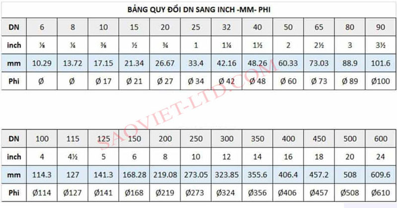 LỰA CHỌN BẢNG THÔNG KÍCH THƯỚC ĐƯỜNG ỐNG