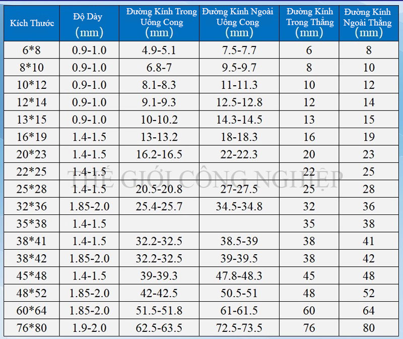 Đường kính trong (ID): 6 mm – 100 mm