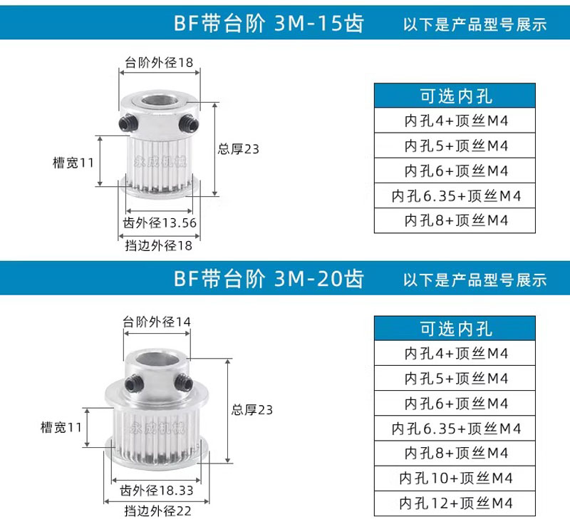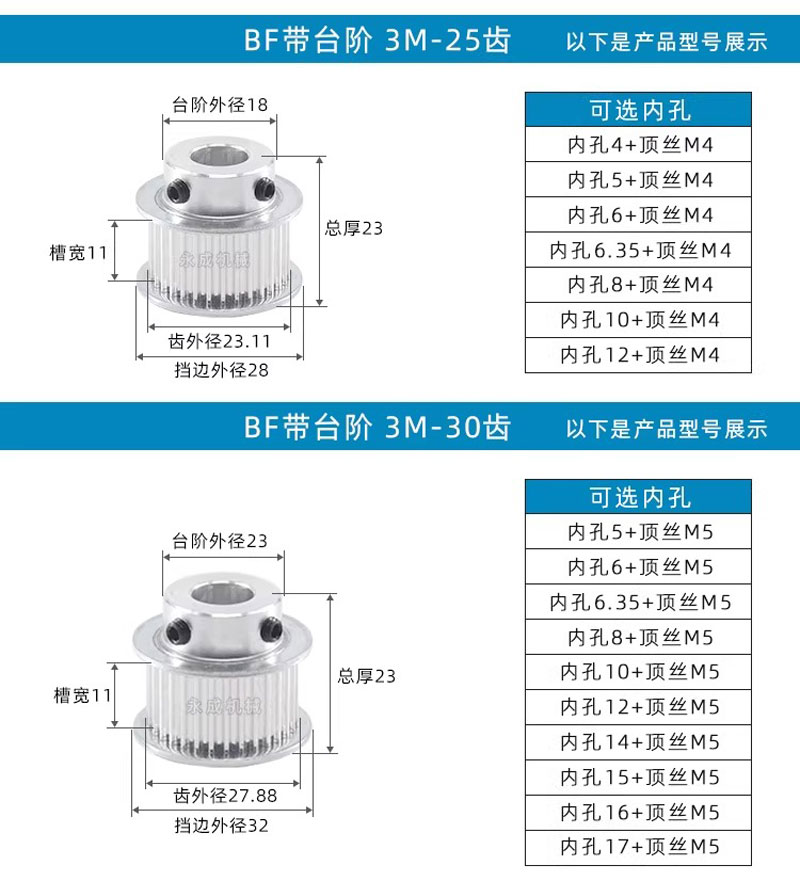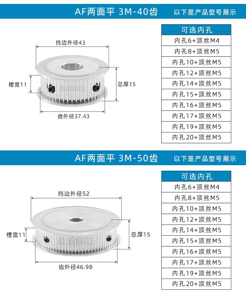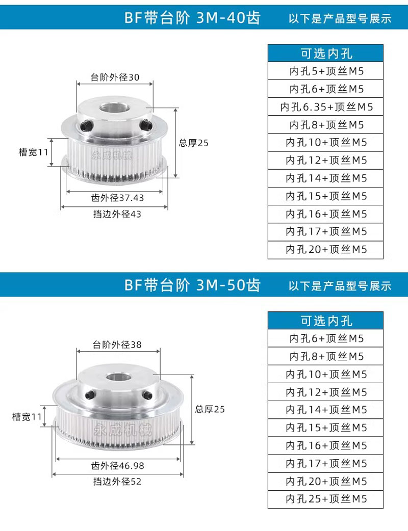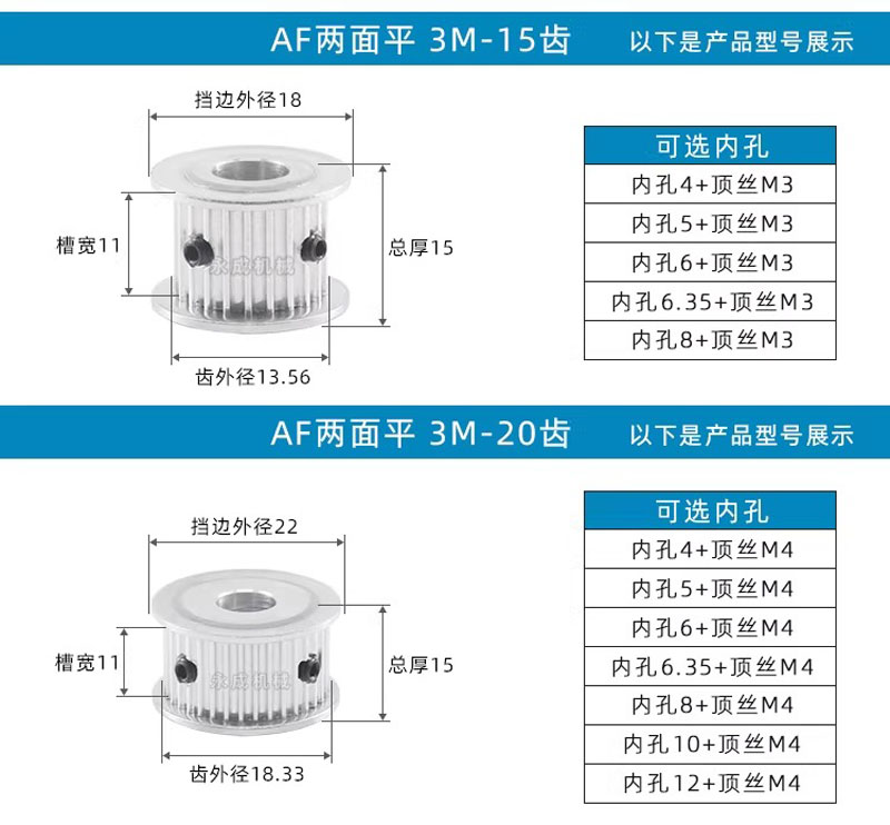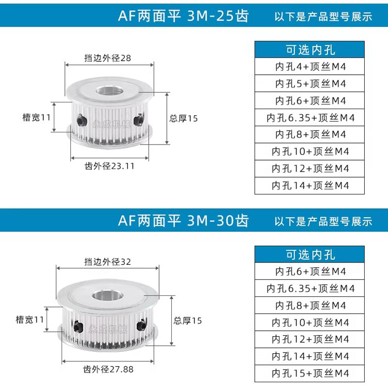 Phù hợp mọi loại dây đai răng 3M (độ dày 3 mm, pitch khoảng 3/8” ~ 9.525 mm).