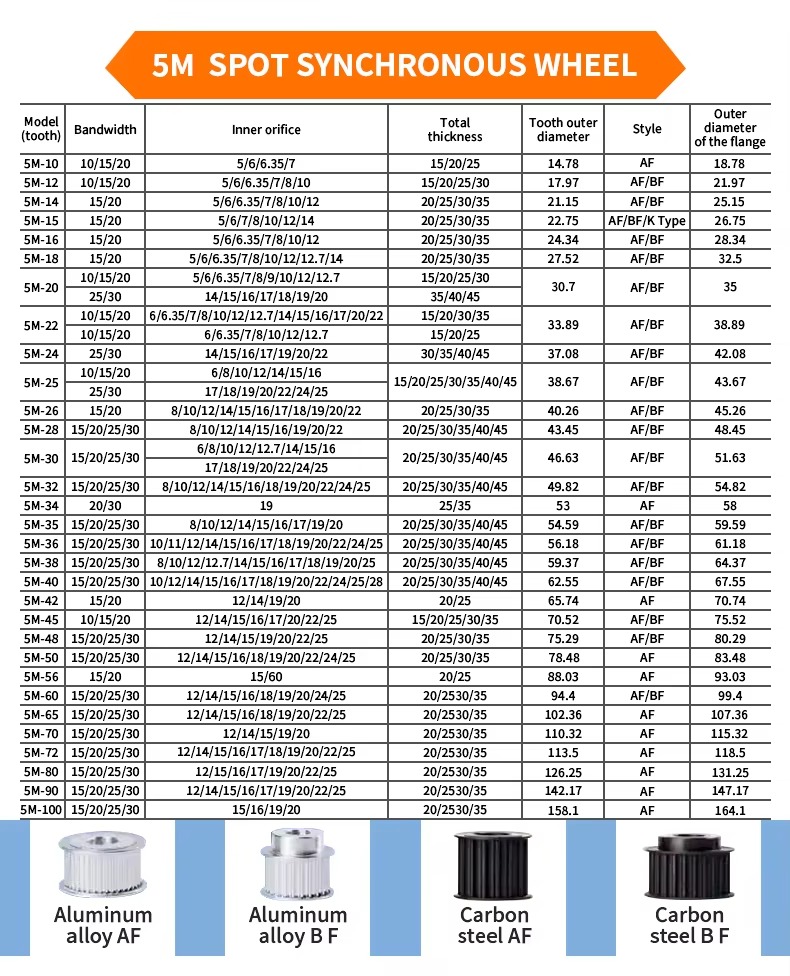 | Răng puly | Răng được gia công theo bước răng 5 mm chuẩn S5M, giúp ăn khớp với rãnh đai. |
