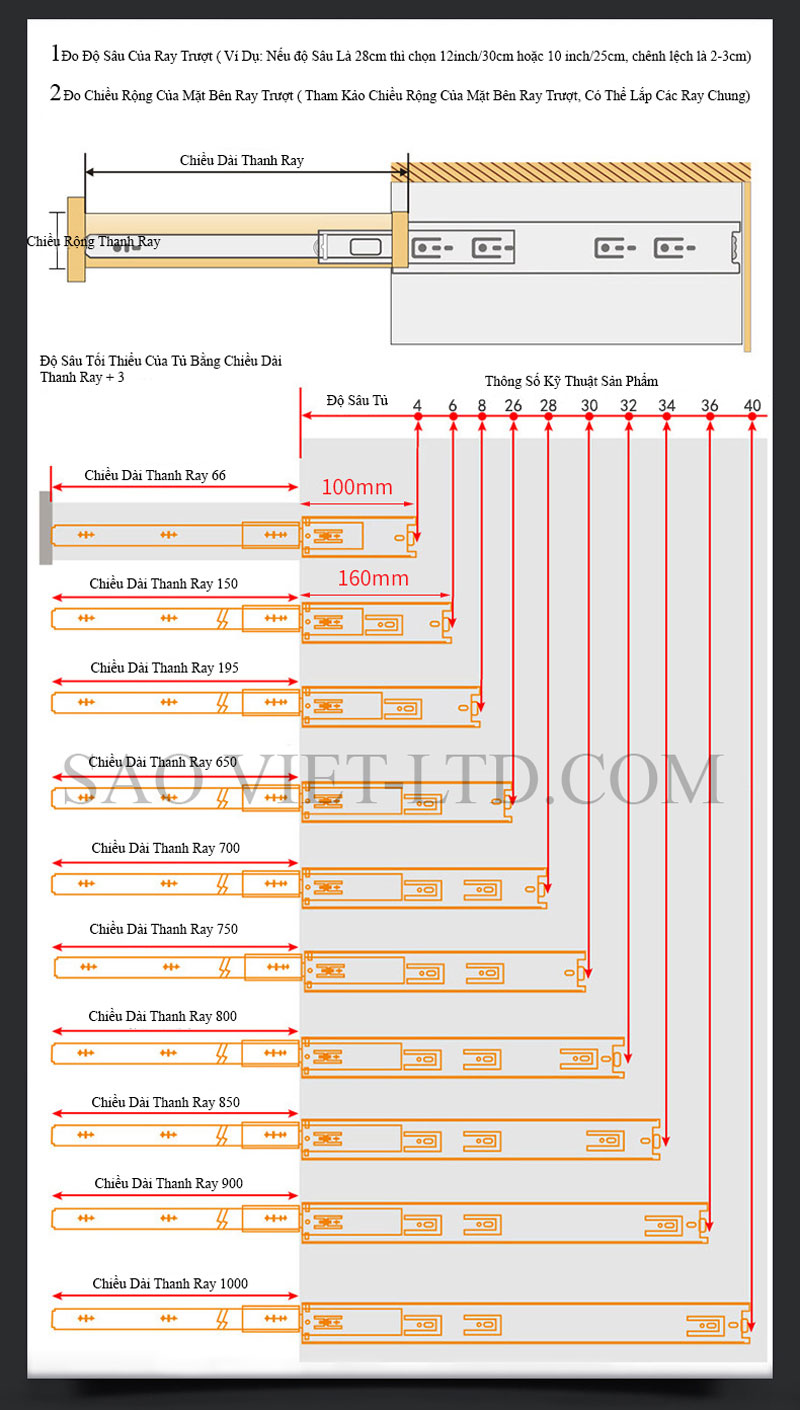 Thông Số Kỹ Thuật Ray Trượt Ngăn Kéo Tủ Nội Thất: