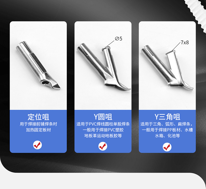 Ứng dụng: hàn nhựa PVC / PP / PE / PPR, hàn sàn nhựa, hàn đường nối