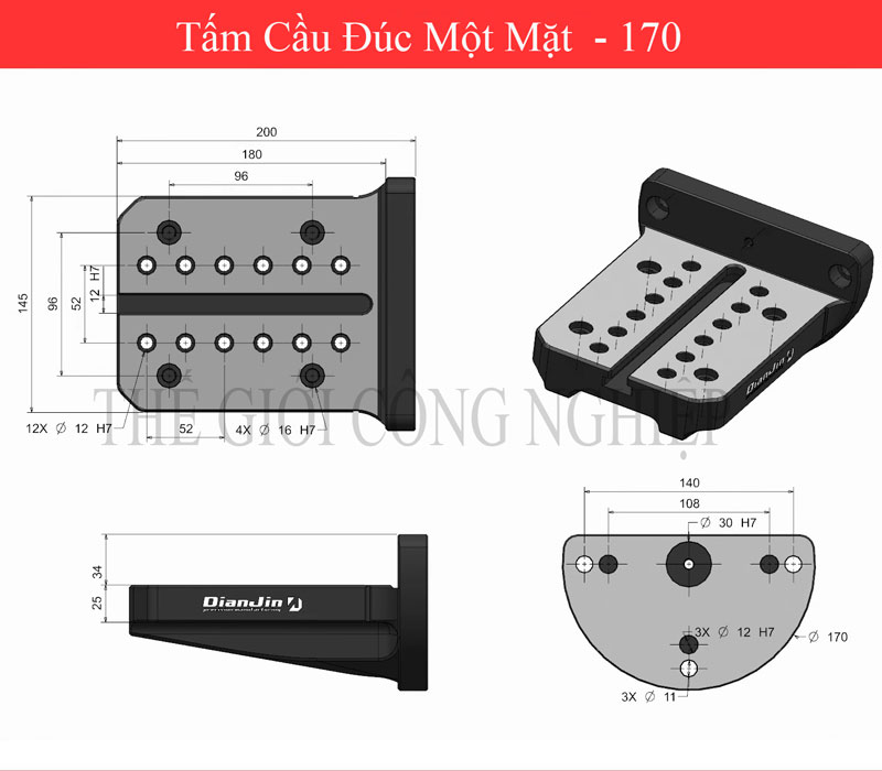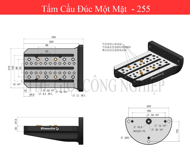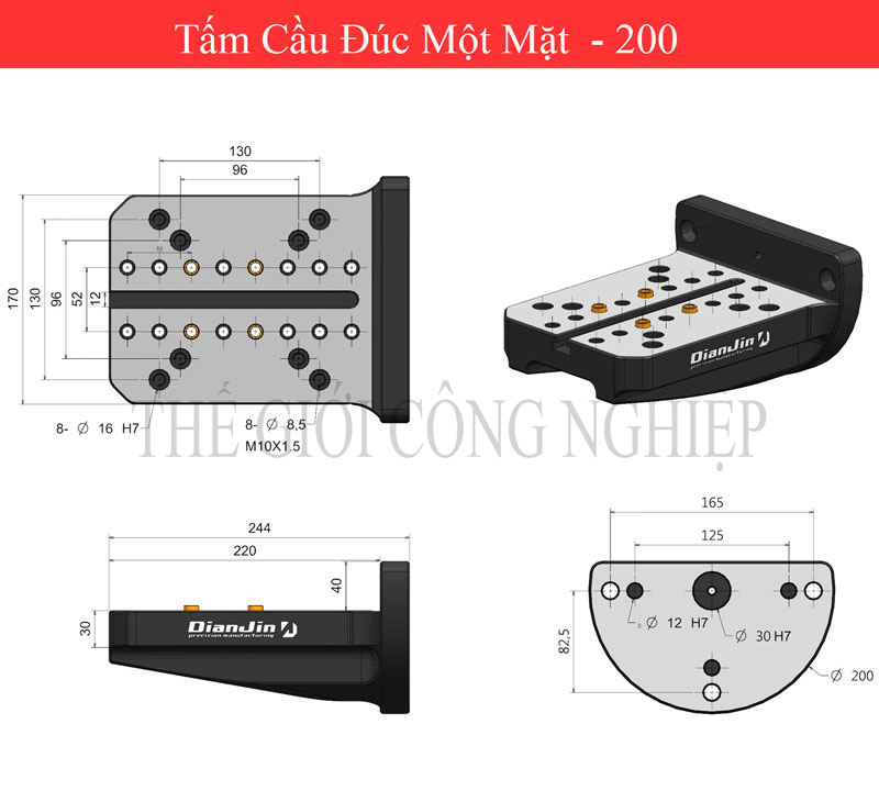 Tấm cầu đúc một mặt bốn trục khối L là một thiết bị hoặc phụ kiện dùng trong gia công cơ khí, thường được sử dụng để gá kẹp các ê tô định tâm như ê tô DJ-AIX5. Thiết kế của tấm cầu này hỗ trợ việc kẹp chặt và cố định các chi tiết trong quá trình gia công, đảm bảo độ chính xác và ổn định cao.