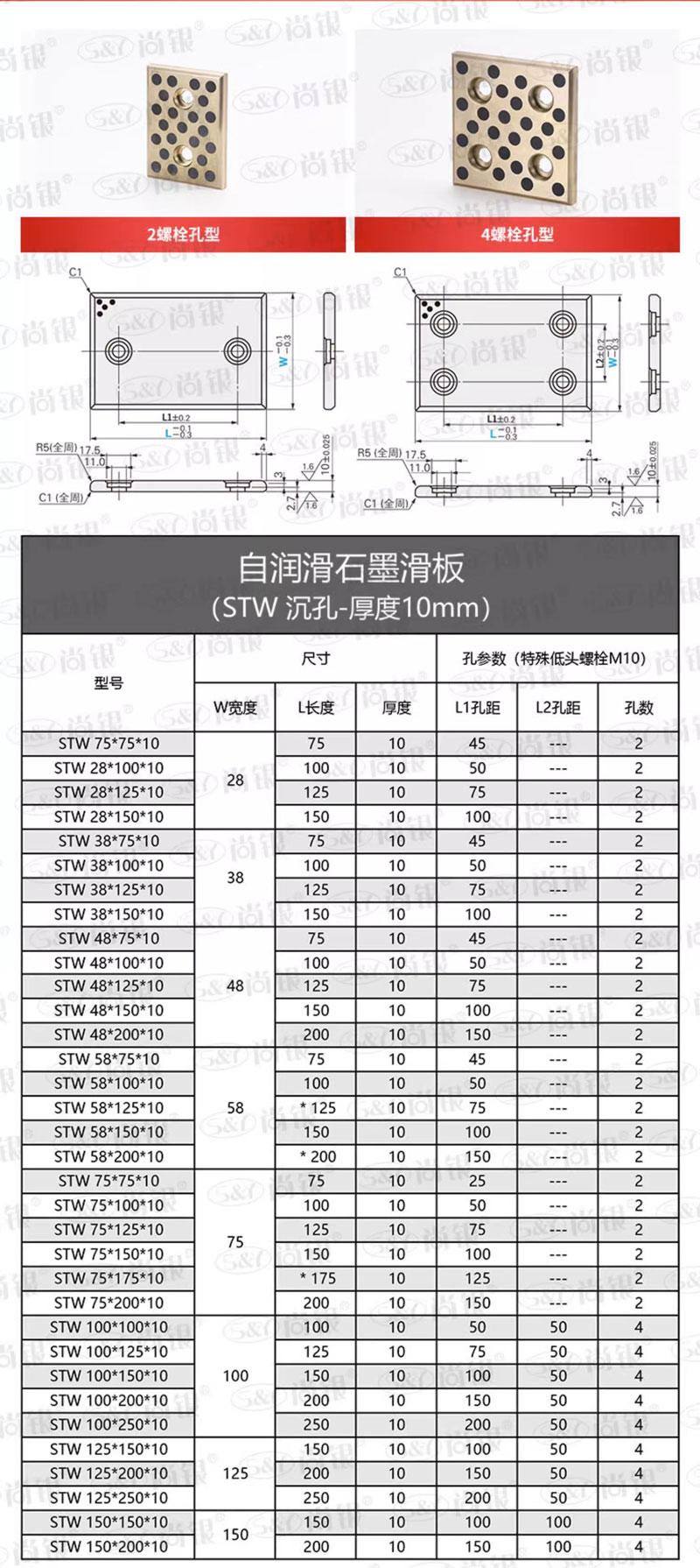 Bảng Thông Số Kỹ Thuật Tấm Trượt Tự Động Bôi Trơn STW