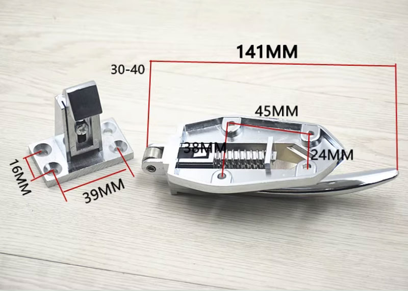 Tay nắm khóa cửa kho lạnh 1151 bản phẳng là phụ kiện khóa – tay nắm chuyên dụng cho các loại cửa công nghiệp yêu cầu độ kín và độ bền cao như cửa kho lạnh, kho đông, tủ hấp, lò sấy và các thiết bị điện – nhiệt. Thiết kế bản phẳng giúp lắp đặt dễ dàng trên bề mặt cửa phẳng hoặc cửa có lớp cách nhiệt dày, đồng thời tạo độ chắc chắn và ổn định khi sử dụng.