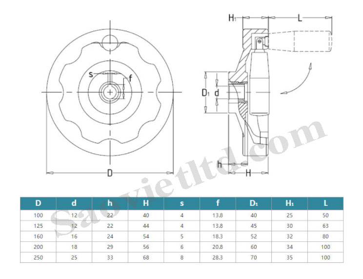 BẢNG THÔNG SỐ KỸ THUẬT TAY QUAY BAKELITE CÓ THỂ GẬP LẠI