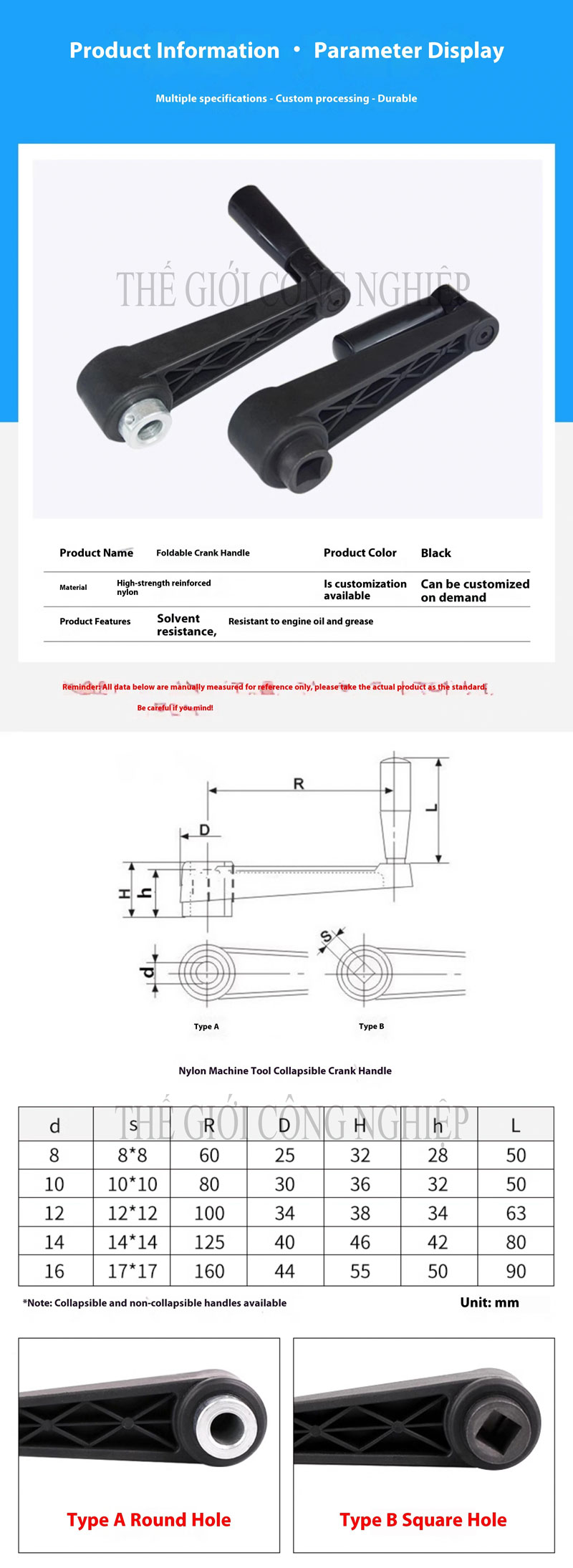 Chiều dài tay quay: 100 mm – 300 mm tùy model.
