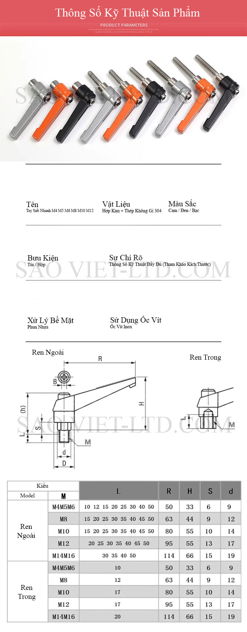 Tay siết nhanh hay còn gọi là tay siết điều chỉnh đùng để siết nhanh các thiết bị và có thể kéo ra tua vòng 360 độ rất phù hợp trong mọi trường hợp như: Tay cầm ngắn, Nghịch tay cầm...