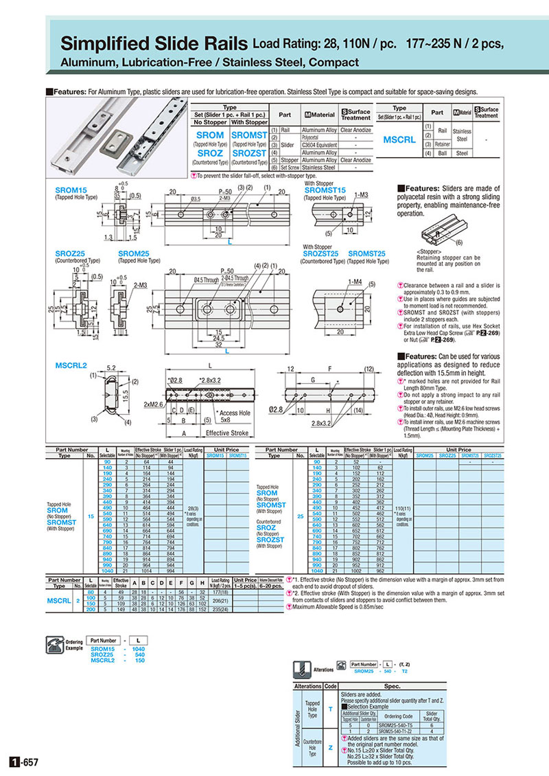 Mô tả chi tiết Thanh Đường Ray Trượt Đơn Giản Hóa MSCRL2 / SROM / SROMST / SROZ