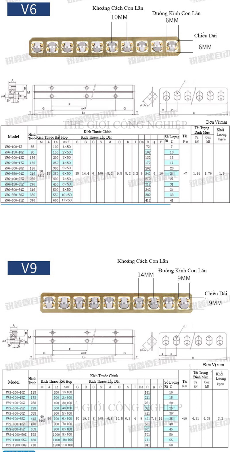 VR9: Kích thước lớn hơn, phù hợp với tải trọng cao và yêu cầu độ ổn định lớn hơn trong dẫn hướng.