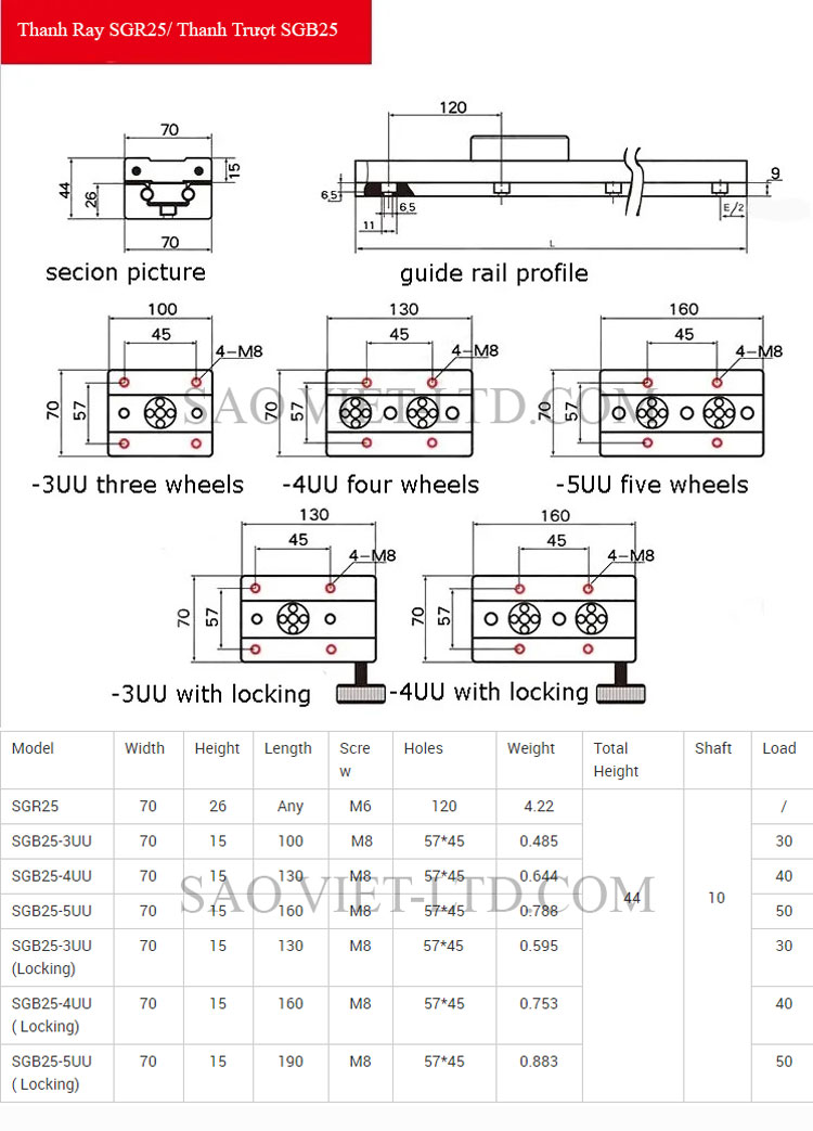 📌 Mô tả chi tiết — Thanh trượt con trượt trục kép SGR / SGB bản màu đen
