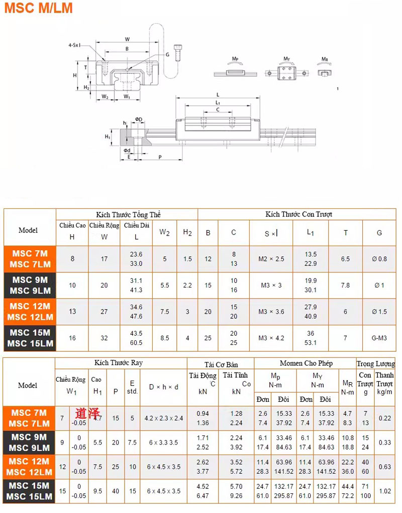 | MSC12 | ~12 mm | Tải lớn, cứng vững cao |