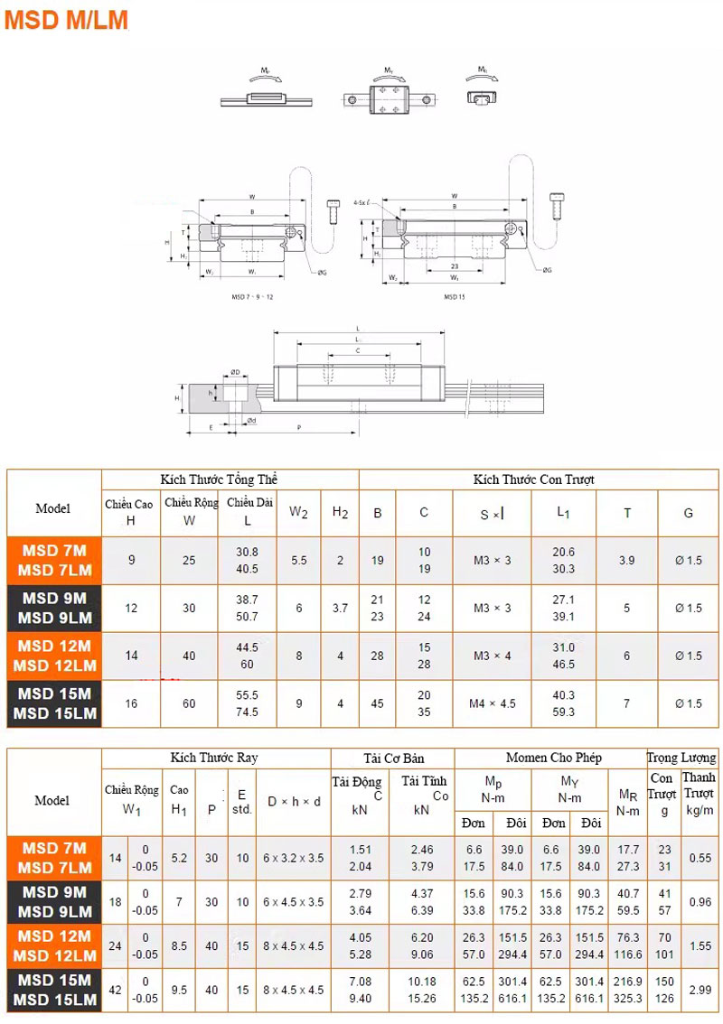 | MSD15 | ~42 mm | Tải lớn, cứng vững cao |
