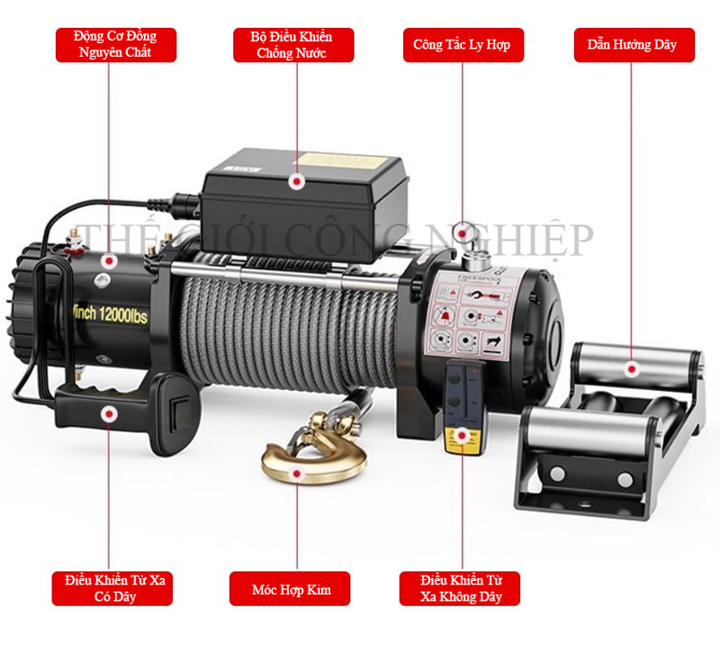 Tời Điện 12V/24V Gắn Xe Ô Tô – Dành Cho Xe Offroad, Xe Tải Nhẹ, Xe Kéo Tự Cứu Thoát Lầy