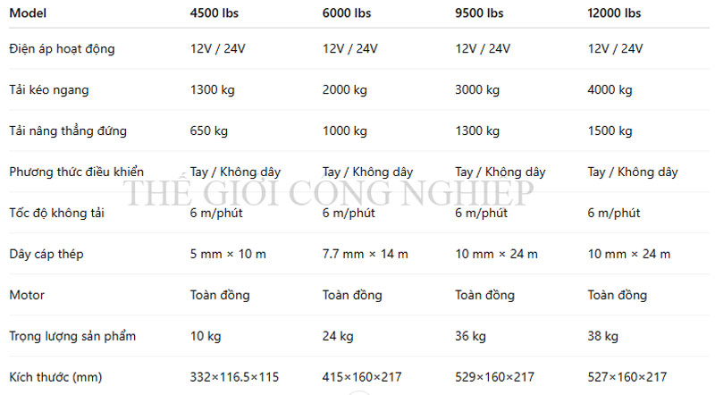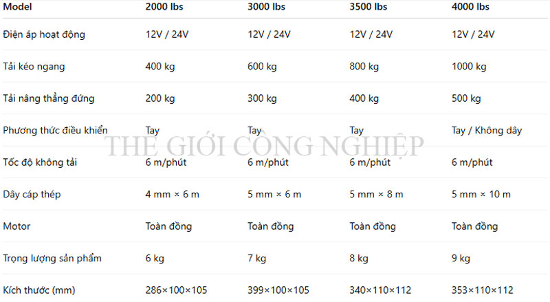 Tải kéo từ 2000 lbs (900kg) đến 12000 lbs (5.4 tấn)