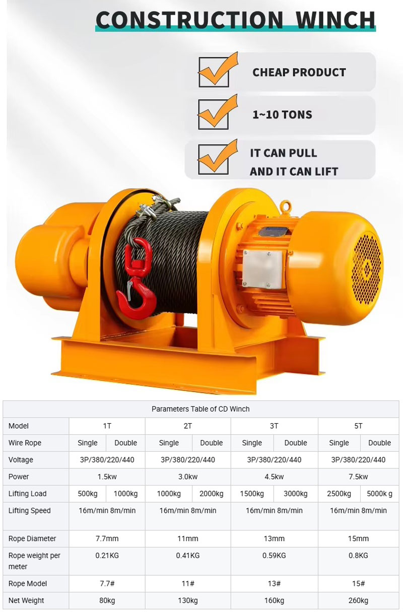 🛠️ Mô tả chi tiết – Tời điện 380V tải nặng (1 tấn, 2 tấn, 3 tấn, 5 tấn)