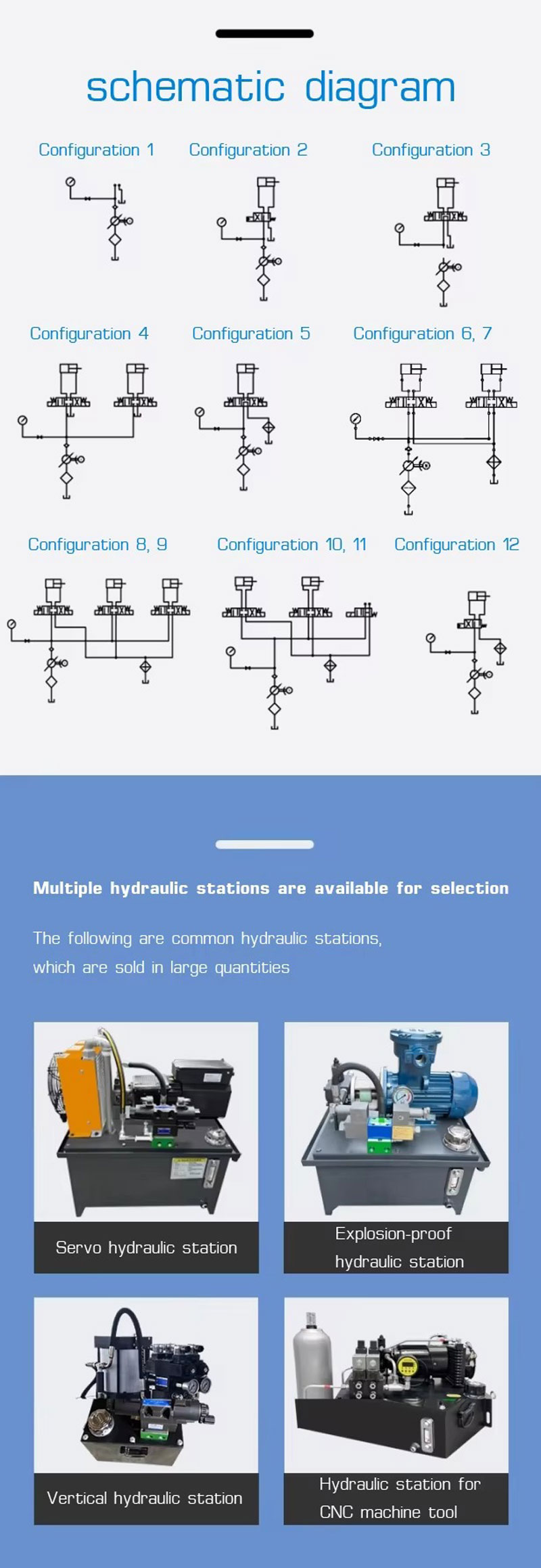 Trạm mini hệ thống bơm dầu thủy lực công suất 0.75kW – 1.5kW – 2.2kW – 4kW – 5.5kW là bộ nguồn thủy lực nhỏ gọn nhưng mạnh mẽ, được thiết kế để cung cấp áp suất và lưu lượng dầu ổn định cho các máy cơ khí, máy ép, máy uốn, máy nén, thiết bị nâng hạ và nhiều hệ thống truyền động thủy lực khác. Với cấu trúc tối ưu và chất lượng linh kiện cao, trạm bơm đáp ứng tốt các nhu cầu hoạt động liên tục trong môi trường công nghiệp.