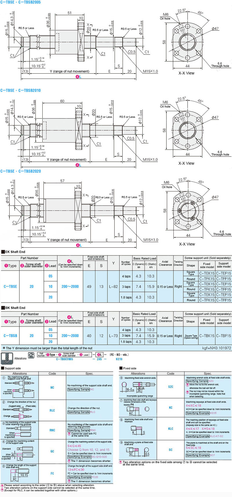 Mô tả chi tiết Trục Vít Bi C-TBSB/SE 2005 2010 2020:
