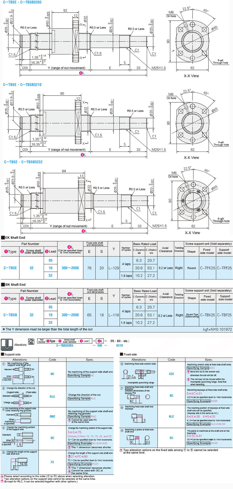 Mô tả chi tiết Trục Vít Bi C-TBSB/SE 3205 / 3210 / 3232