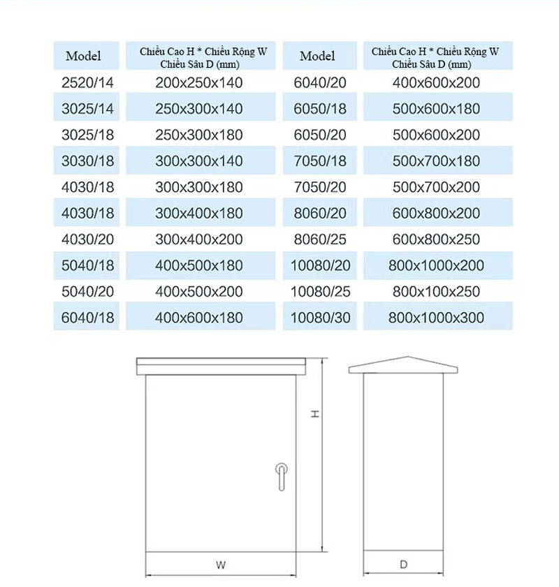 Ngoài ra, tủ có thể tùy chọn thêm mái che, lớp cách nhiệt, quạt thông gió hoặc gia công kích thước theo yêu cầu, đáp ứng đa dạng nhu cầu sử dụng trong thực tế.